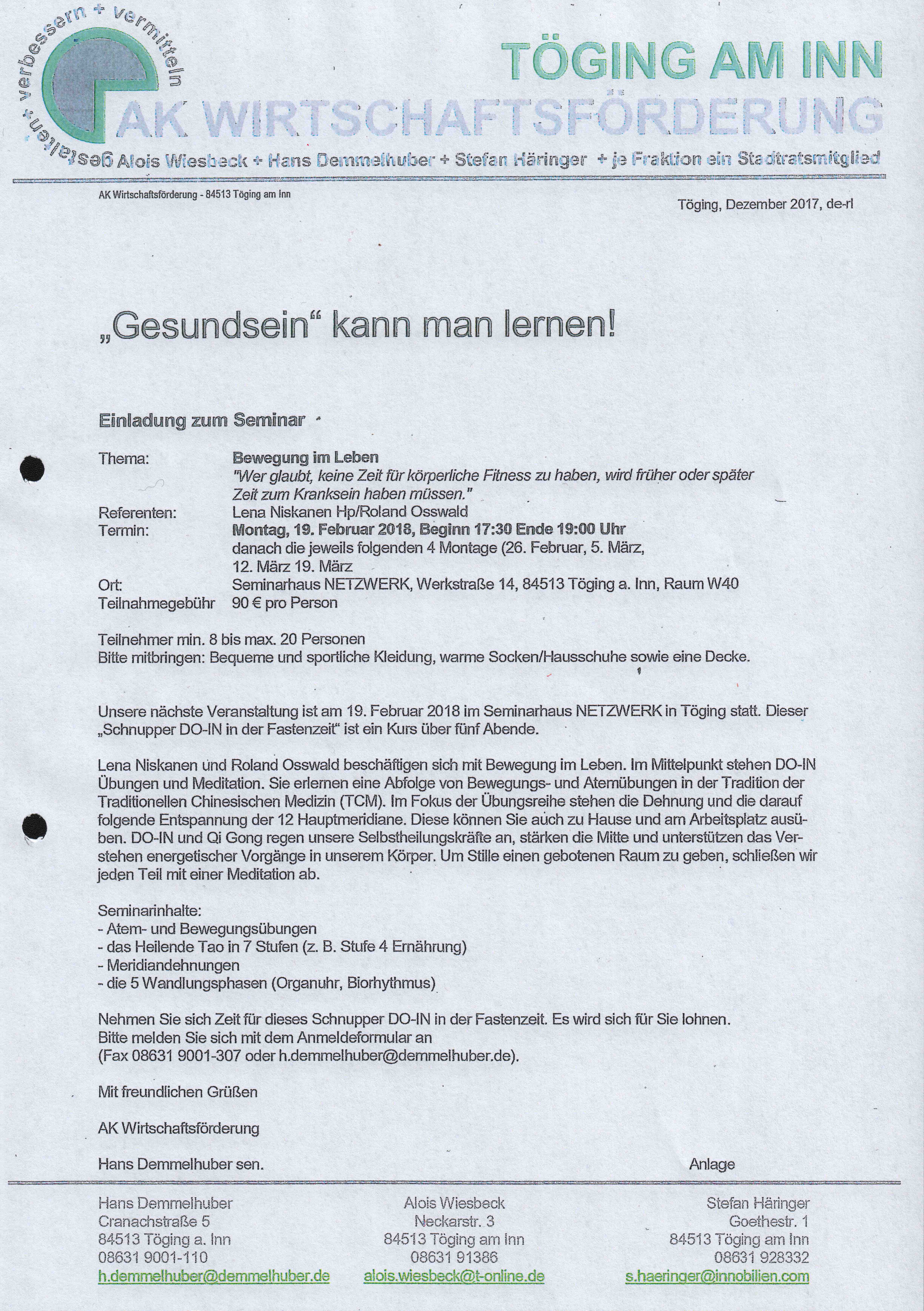 Es besteht die Möglichkeit, bei dem Schnupper Do-In in der Fastenzeit Einzeltermine wahrzunehmen, à 20 Euro pro Einheit.